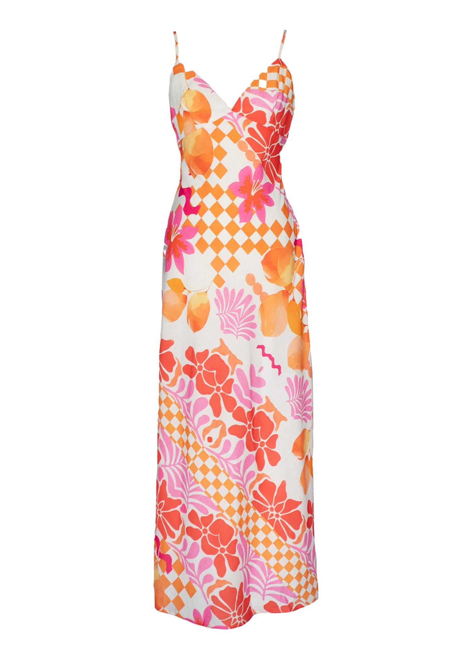 Q: How do I care for the Pacific Midi Dress? A: It is recommended to machine wash the dress in cold water on a gentle cycle and hang it to dry. This will help maintain its vibrant colors and fabric quality.