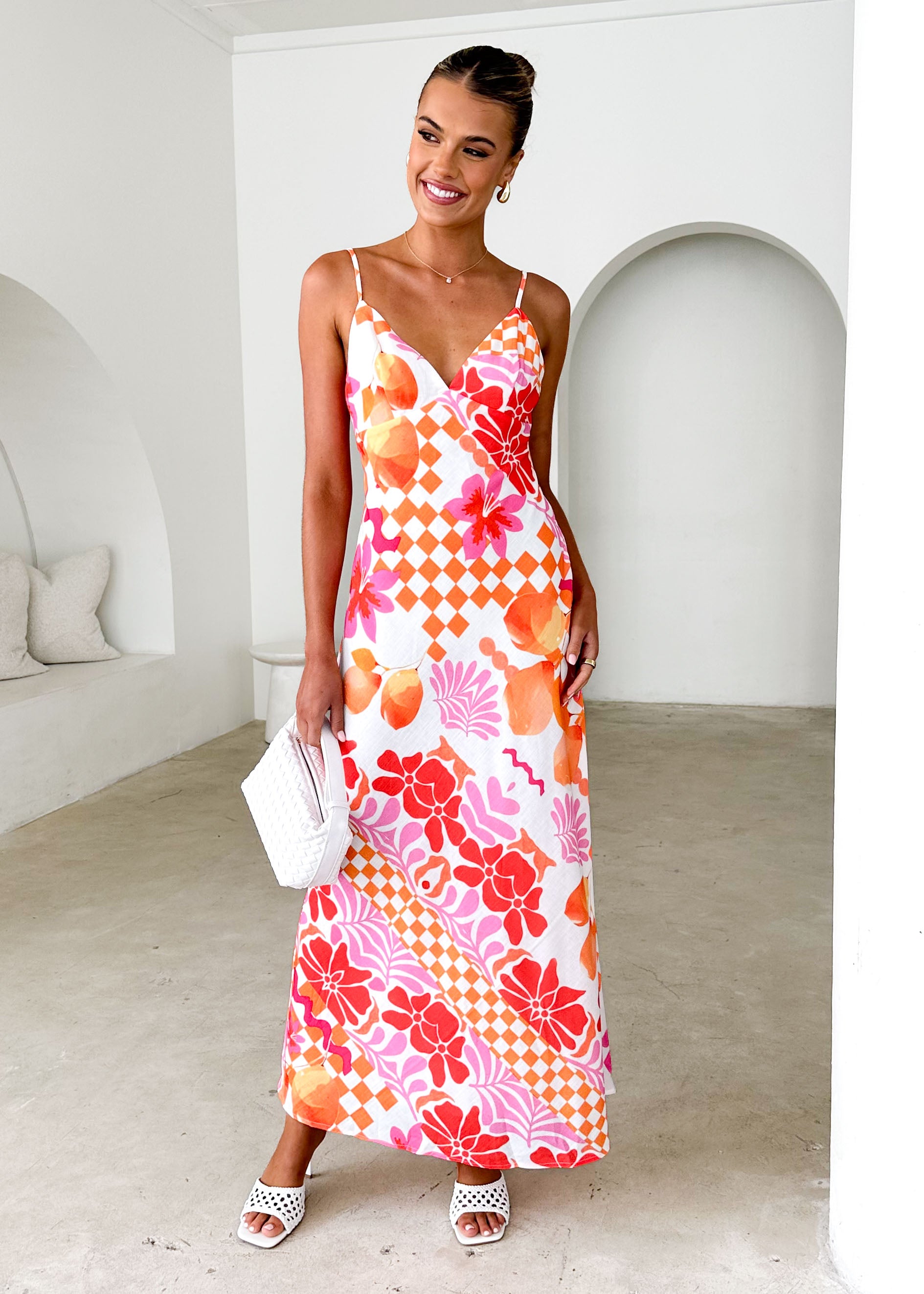 The Pacific Midi Dress from Gingham and Heels features a vibrant orange floral print, perfect for sunny days and vacation vibes. This stylish dress effortlessly combines comfort and elegance, making it an ideal choice for beach outings, poolside lounging, or casual gatherings with friends. Made from lightweight, breathable fabric, it ensures a flattering fit and freedom of movement, while its midi length offers a chic silhouette. **Highlights:** - **Stylish Design**: Eye-catching orange floral pattern that stands out. - **Comfortable Fit**: Designed with lightweight fabric for easy wear. - **Versatile**: Perfect for beach days, summer parties, or casual brunches. - **Flattering Length**: Midi style enhances the figure while providing modesty. This dress is tailored for young women in their 20s who crave a blend of fashion and functionality. Make a statement this summer with a look that's both fun and sophisticated!